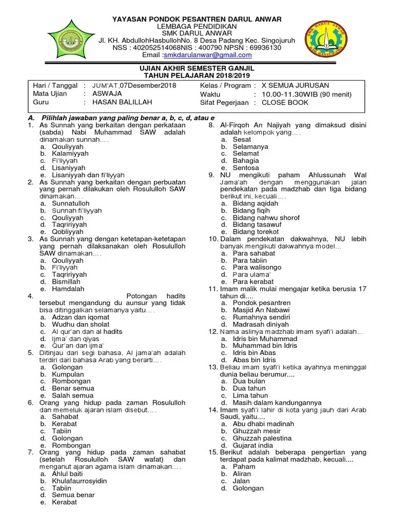 Soal aswaja kelas 10 beserta jawabannya guru ilmu sosial.